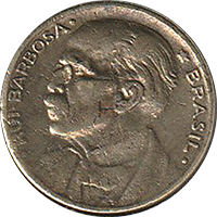 | ANVERSO: | A efígie do jurista, autor e político Ruy Barbosa voltado para a esquerda. Na orla a inscrição "RUY BARBOSA" seguida de uma estrela "*" e da palavra "BRASIL" | |||