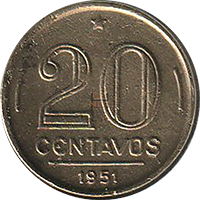 | REVERSO: | Ao centro o valor "20 CENTAVOS". No centro, ao alto, a estrela Alfa da constelação do Cruzeiro do Sul, na parte inferior, a era 1951 | |||