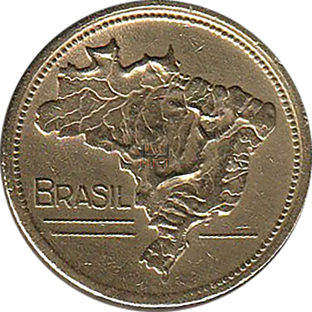 | ANVERSO: | Mapa do Brasil o centro, junto à orla, à esquerda, a palavra "BRASIL" sobreposta a duas linhas horizontais e paralelas. | |||